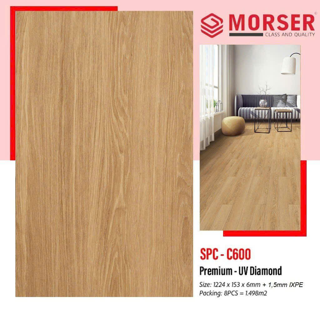 Sàn Nhựa Hèm Khóa Morser SPC C600 Đế Cao Su là dòng sản phẩm vừa ra mắt của thương hiệu Morser. Đế cao su giúp sàn ổn định và bền bỉ hơn, không bị bể hèm. Bên cạnh đó, bề mặt sàn Morser mang kiểu cách hiện đại, quý tộc hứa hẹn sẽ là dòng sản phẩm sàn nhựa cực HOT trong thời gian tới. trầy xước.