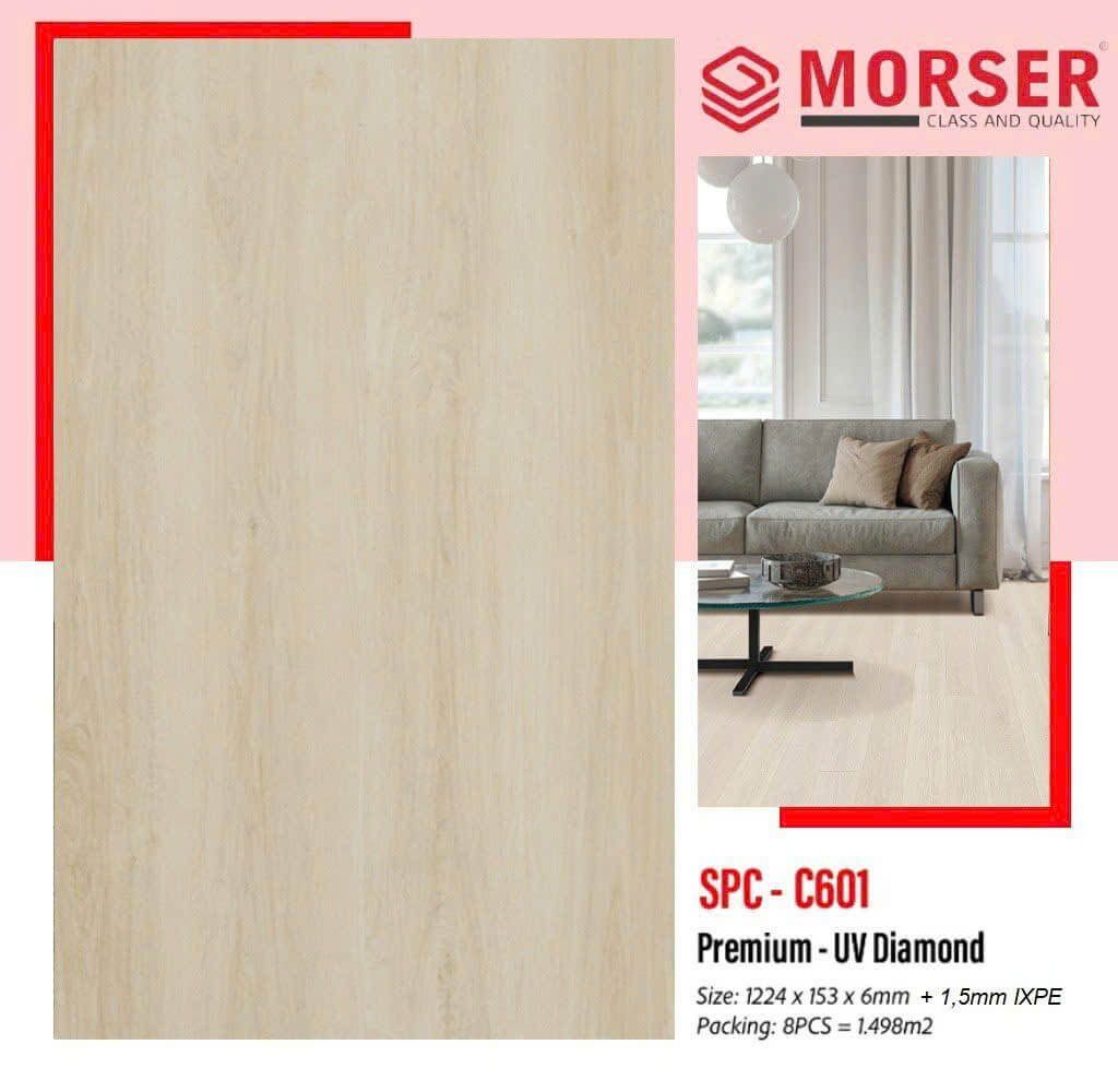 Sàn Nhựa Hèm Khóa Morser SPC C601 Đế Cao Su là dòng sản phẩm vừa ra mắt của thương hiệu Morser. Đế cao su giúp sàn ổn định và bền bỉ hơn, không bị bể hèm. Bên cạnh đó, bề mặt sàn Morser mang kiểu cách hiện đại, quý tộc hứa hẹn sẽ là dòng sản phẩm sàn nhựa cực HOT trong thời gian tới.