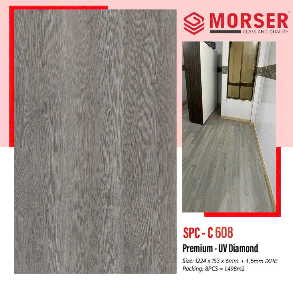 Sàn Nhựa Hèm Khóa Morser SPC C608 Đế Cao Su là dòng sản phẩm vừa ra mắt của thương hiệu Morser. Đế cao su giúp sàn ổn định và bền bỉ hơn, không bị bể hèm. Bên cạnh đó, bề mặt sàn Morser mang kiểu cách hiện đại, quý tộc hứa hẹn sẽ là dòng sản phẩm sàn nhựa cực HOT trong thời gian tới.