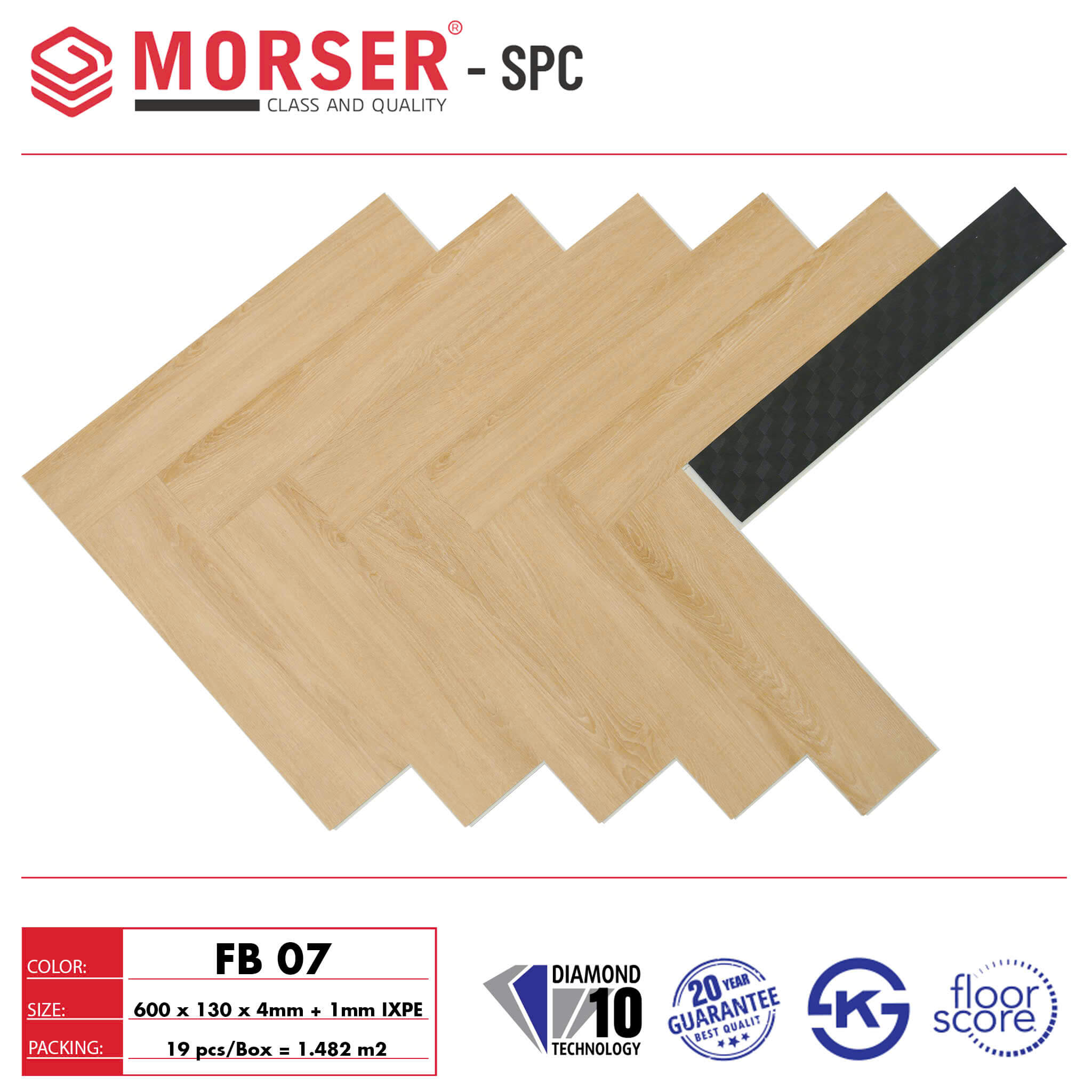 Sàn Nhựa Xương Cá Morser đế cao su FB07 được tích hợp thêm lớp lót cao su, giúp bề mặt sàn trở nên êm chân và bảo vệ hèm khóa chắc chắn hơn. Sàn nhựa Morser được khách hàng đánh giá cao về tính thẩm mỹ, ổn định và khả năng chống trầy xước.